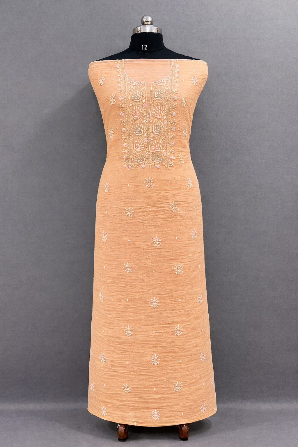 Be the first to review “Full three pice suit meatiral Fabric mul chanderi (Peach)”