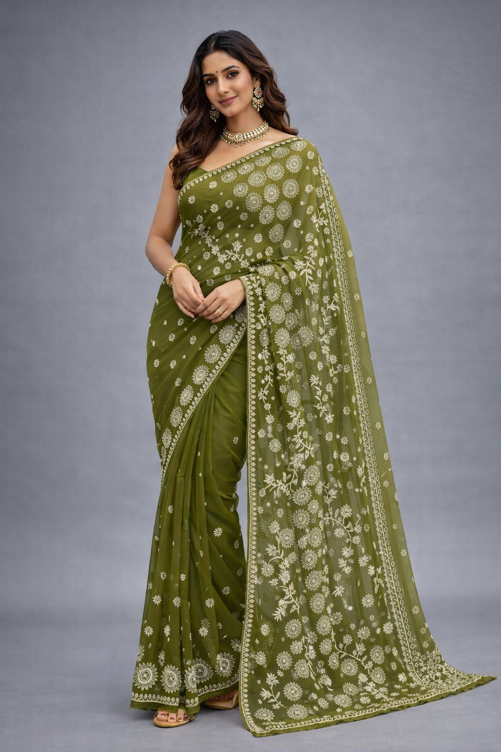 Saree Fabric- georgette (Olive Green)