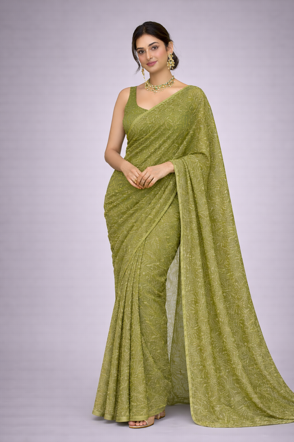Saree Fabric kota (Olive Green)